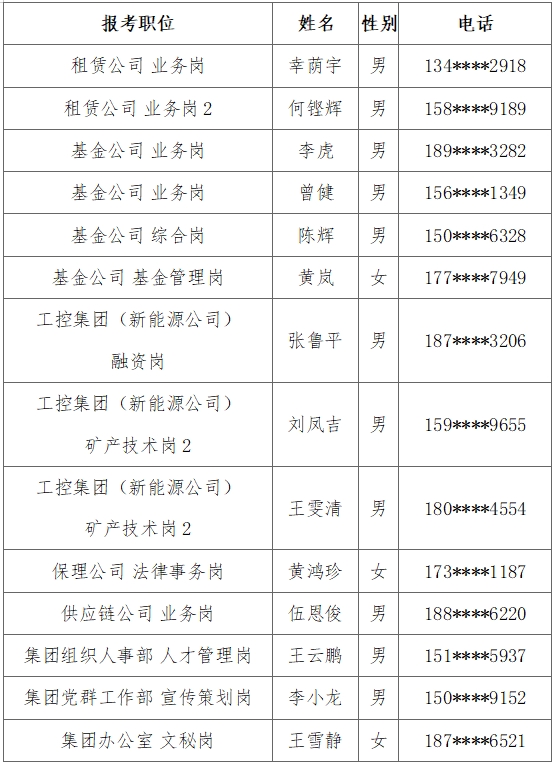 根據《贛州發展投資控股集團2024年公開招聘公告》有關規定,通過公開報名、簡歷初審、資格審查、筆試、面試、體檢與背調等程序,經研究,確定以下14名同志為擬錄用人員,現予以公示: