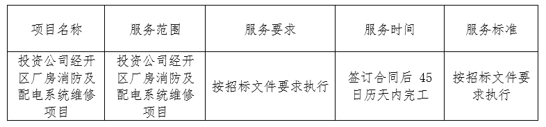 投資公司經開區廠房消防及配電系統維修項目的競爭性談判成交結果公告