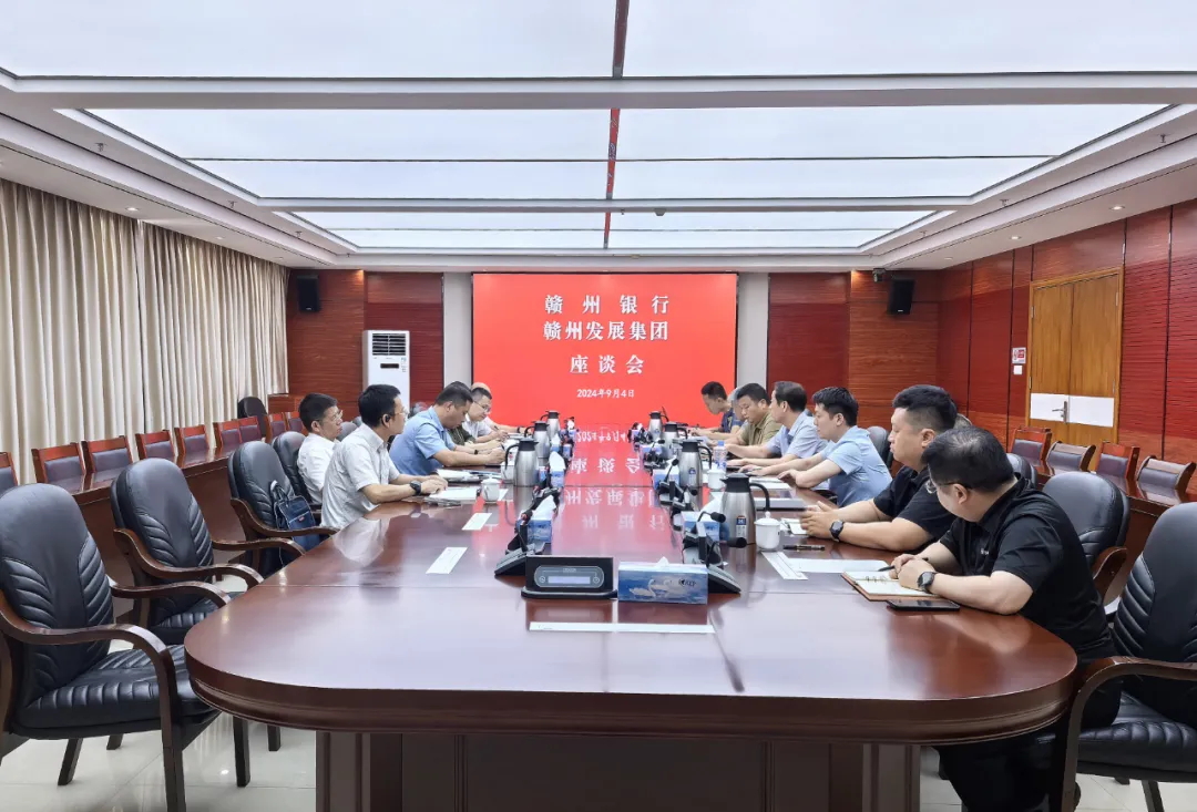 9月4日,贛州銀行黨委書記、董事長徐松一行到贛州發展集團座談交流,雙方就進一步深化銀企合作進行了深入探討。贛州發展集團黨委書記、董事長楊曉斌,集團黨委副書記黃儲出席座談;贛州發展集團業務部門及相關子公司負責人,贛州銀行相關部門及分支機構負責同志參加座談。