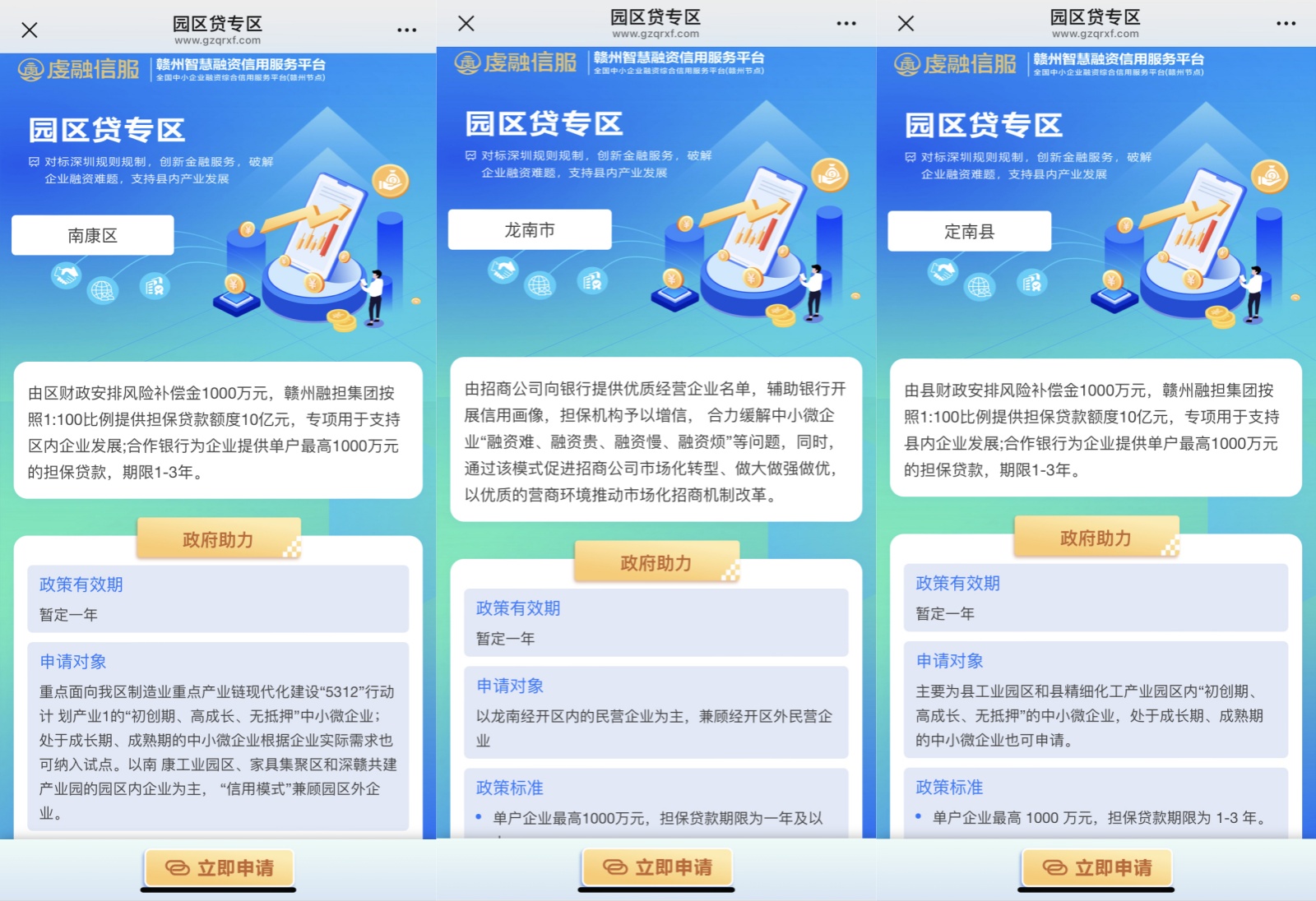 下一步,“虔融信服”平臺將基于目前“園區貸”專區取得的工作進展及成效,進一步溝通對接陸續上線贛縣區、瑞金市、上猶縣、全南縣等區縣的“園區貸”專區,持續深化數字賦能,推動“園區貸”經驗可復制可推廣,致力于推動惠企政策“直通、直達、直感、直享”,將惠企政策落地落細,助推民營經濟高質量發展。