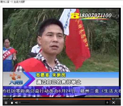 志愿者朱新民:通過自己的言行舉止,來影響和帶動我們贛州市民,一起來參與文明城市建設。