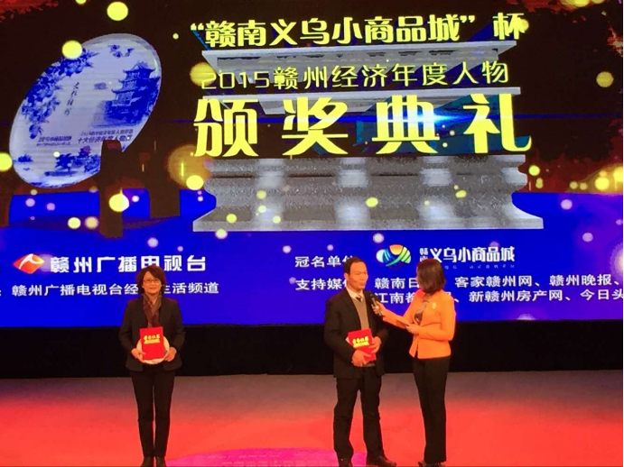 2016年1月25日晚,“贛南義烏小商品城杯”2015贛州經濟年度人物頒獎典禮在贛州廣播電視臺演播大廳舉行。贛州發展集團副總經理、贛州發展融通資產管理有限公司董事長鐘久祥同志榮獲“贛南義烏小商品城杯”2015贛州經濟年度十大人物獎。