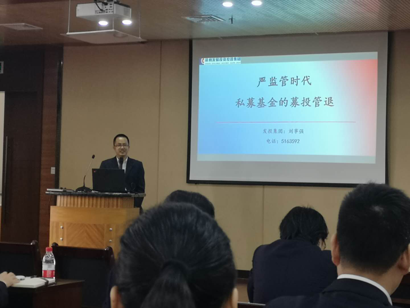 為進一步提升員工業(yè)務(wù)水平,拓寬知識面,加強交流思想,4月13日,集團在新時代文明實踐中心組織開展了“員工大講堂”活動,基金公司風(fēng)控總監(jiān)劉事強以《嚴(yán)監(jiān)管時代私募基金的募投管退》為題授課。