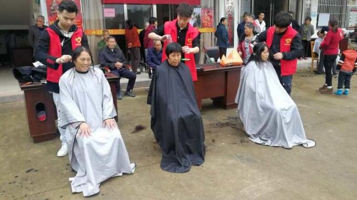 現場邀請的4名理發師志愿者按照順序依次為老人們理發,圍罩衣、打濕頭發、設計發型、修剪頭發......好不熱鬧。截止目前,免費理發人數達80余人。活動的開展不僅為村民送去了夏日清涼,更加拉近了與村民的關系,為后續開展扶貧工作打下了良好的群眾基礎。