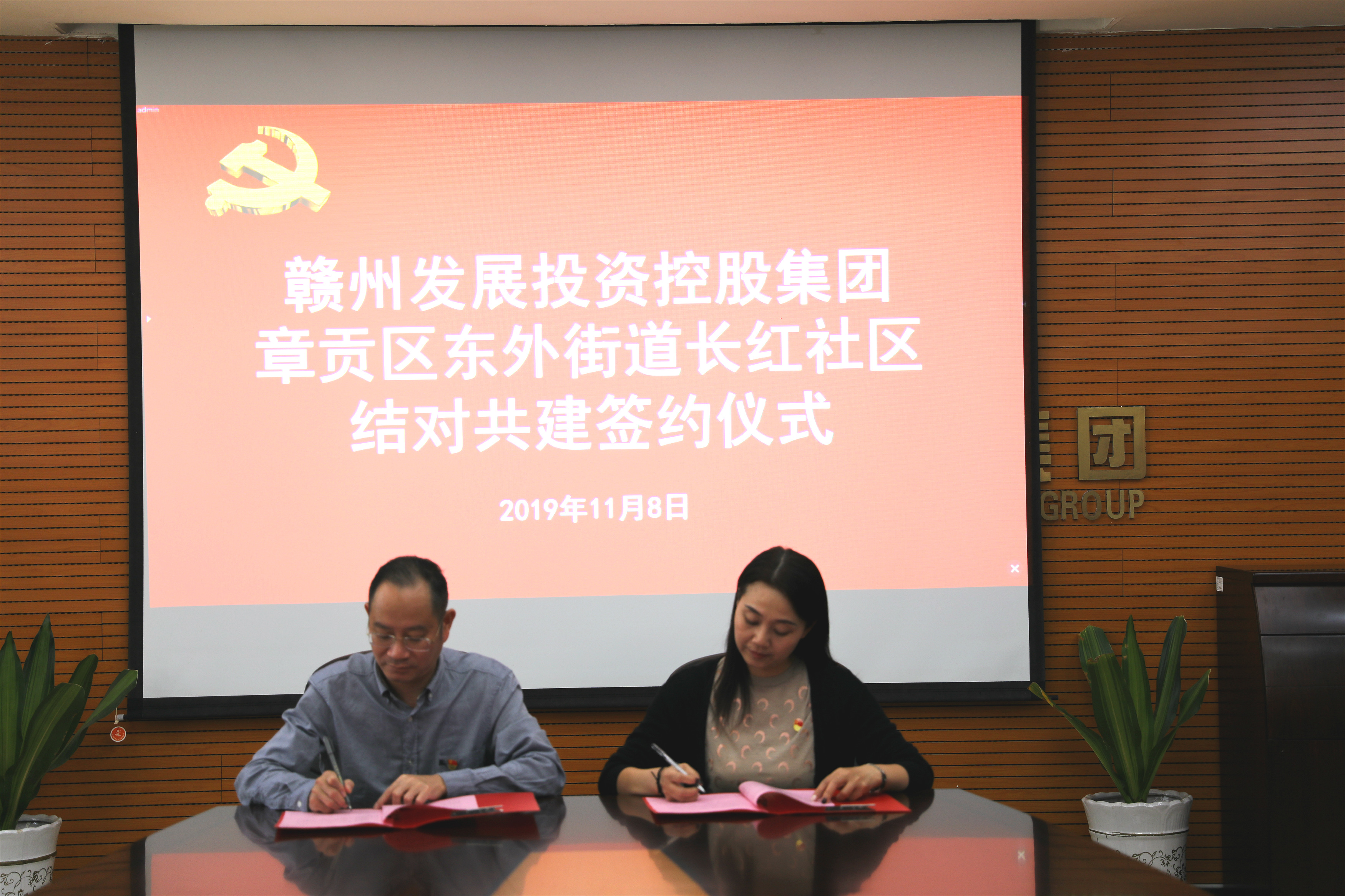 為進一步推動城市基層黨建工作,建立健全城市基層黨建共建機制,11月8日下午,贛州發展集團黨委書記、董事長李賤貴與章貢區東外街道長紅社區黨總支書記盧艷青簽訂結對共建協議書,并就結對共建事項進行交流,進一步明確了下一步結對共建工作思路,并建立常態化的黨建共建共享機制,為雙方開展共建工作打下堅實的基礎。