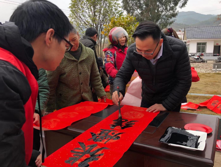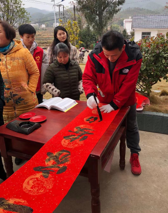“無聯不成春,有聯春更濃”,每年臨近春節,集團都會組織書法小組的成員為掛點扶貧——南康區浮石鄉圳玄村開展寫春聯、送春聯志愿活動。