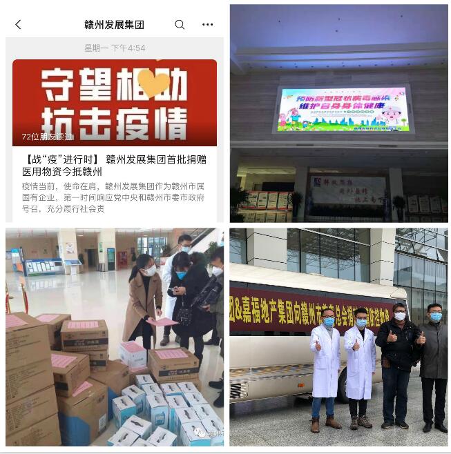 兵馬未動,糧草先行。疫情從武漢向全國蔓延,全國疫情防控物資優先供給武漢,贛州各大醫療機構疫情防控物資嚴重不足。看到各大醫院發出公告接受社會捐贈,集團黨委以坐不住的責任感和等不起的緊迫感,主動靠前,成立以集團黨委書記掛帥,各黨支部聯動的抗疫緊缺物資采購應急工作小組,融資租賃黨支部和投資公司黨支部發揮供應鏈業務及物資采購渠道優勢,主動聯系企業拓寬物資采購渠道,并尋求海外渠道進口抗疫所需物資,積極協調聯系合作企業予以物流支持,最終在海外采購疫情防控急需的醫療物資得到落實,采購的溫度計、消毒液、口罩等疫情防控醫療物資將陸續抵達贛州。心系群眾,傳遞愛心。2月3日,贛州發展集團聯合嘉福地產集團一同將第一批抵達贛州價值約14萬元,包括防護服250套、75%酒精20件、護目鏡300個、防護面罩400個、消毒液18桶的醫用物資分別送到了贛州人民醫院和贛南醫學院第一附屬醫院,后續還有價值86萬元的醫用物資陸續送達,助力我市打贏疫情防控阻擊戰。