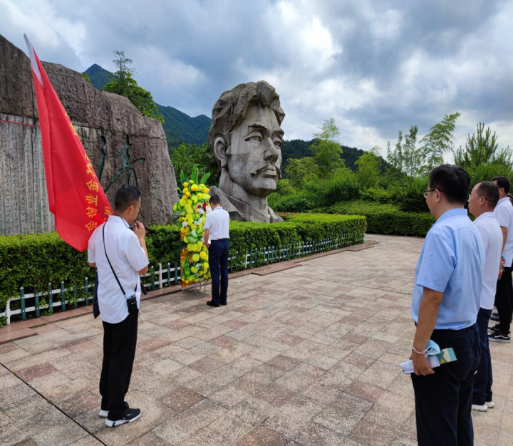 迎著驕陽,基金公司黨支部黨員同江西省基金業協會理事成員、部分會員代表和協會秘書處工作人員一行先后來到了上饒市玉山縣懷玉山的中國工農紅軍北上抗日先遣隊紀念碑、紀念館及清貧園的清貧碑,重溫了方志敏等人率領的中國工農紅軍北上抗日先遣隊戰斗于懷玉山區的英勇事跡與光輝歷史,瞻仰了方志敏烈士雕像并敬獻了花圈,表達了對革命烈士的緬懷和思念。