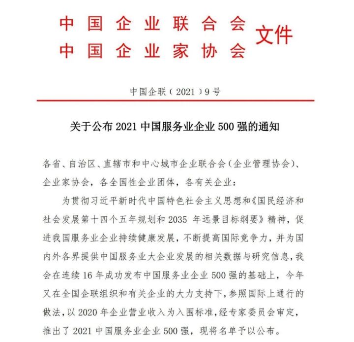 喜訊!贛州發(fā)展集團(tuán)入圍中國(guó)服務(wù)業(yè)企業(yè)500強(qiáng)