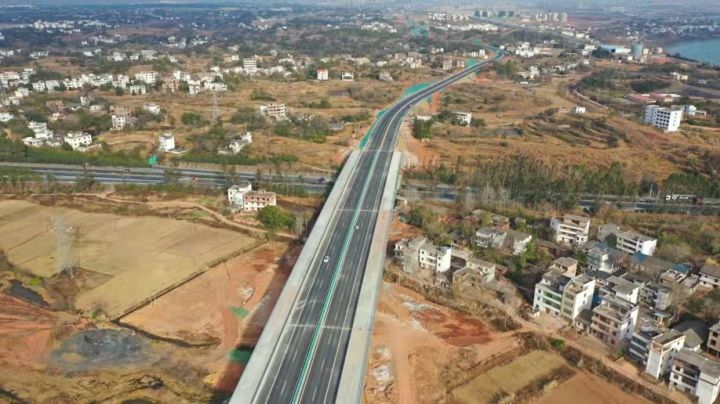 ▲圖為2020年12月23日,G105國道贛州中心城區改線一期工程實現雙向主車道全線通車。