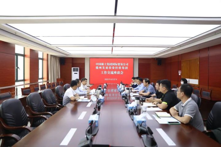 10月27日,中國稀土集團國際貿易有限公司總經理黃瑋澤一行到贛州發展集團座談交流。集團黨委書記、董事長楊曉斌出席座談會,黨委委員、風控總監劉昭祥及相關部門、子公司負責人參加會議。