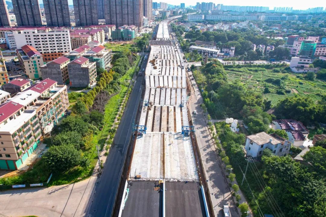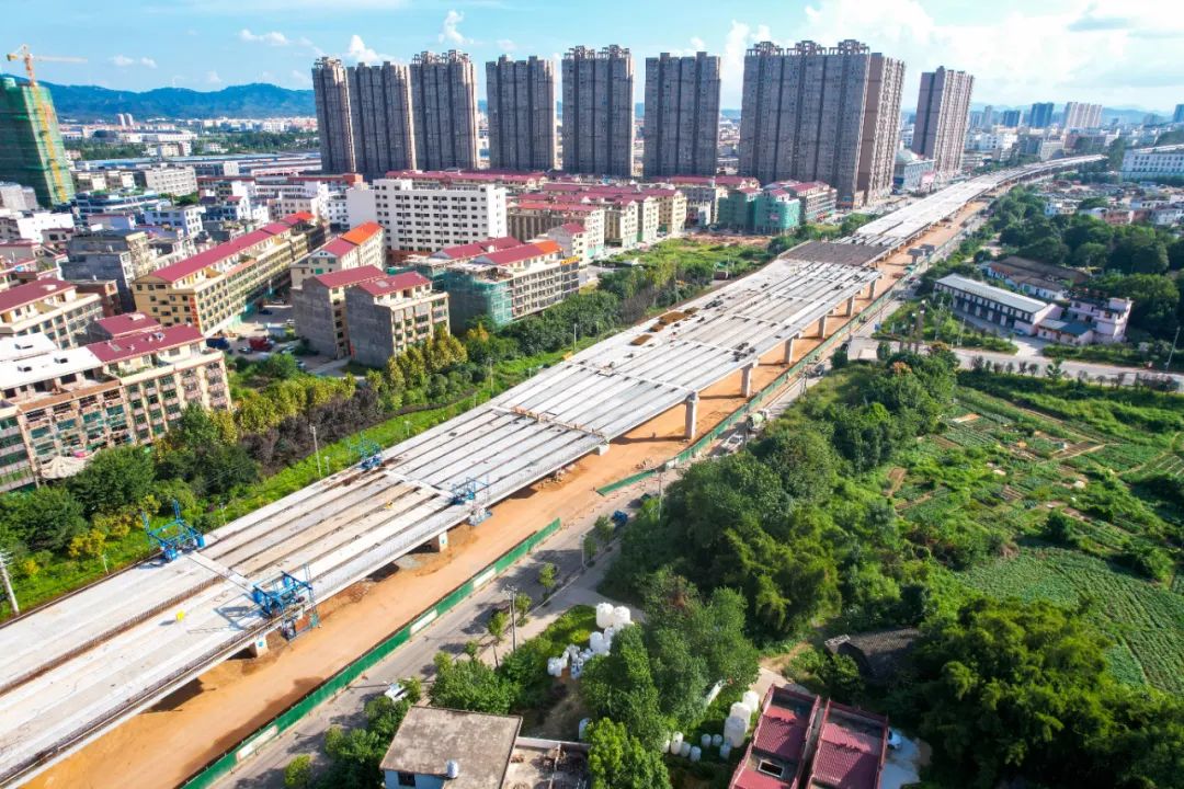贛南大道快速路(龍嶺西路-創勝路東側段)項目高架主線箱梁架設全部完成