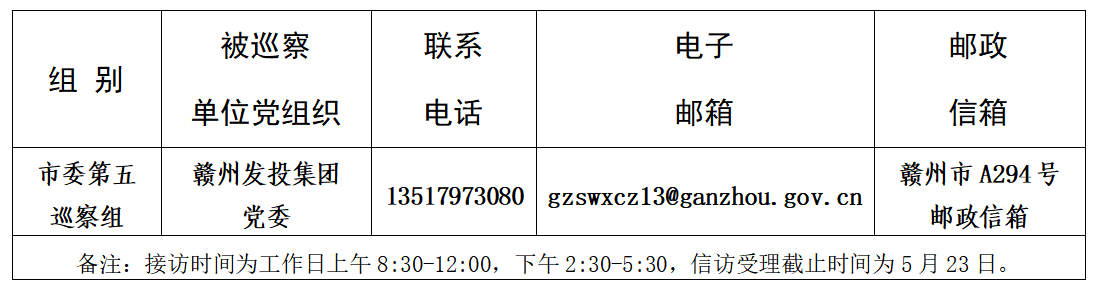 市委第五巡察組對(duì)贛州發(fā)投集團(tuán)黨委 巡察“回頭看”的公告