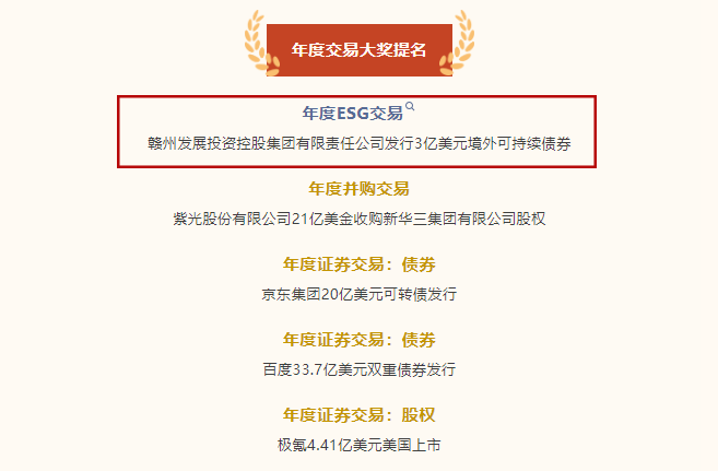 贛州發(fā)展集團(tuán)3億美元可持續(xù)發(fā)展境外債券獲國(guó)際獎(jiǎng)項(xiàng)提名