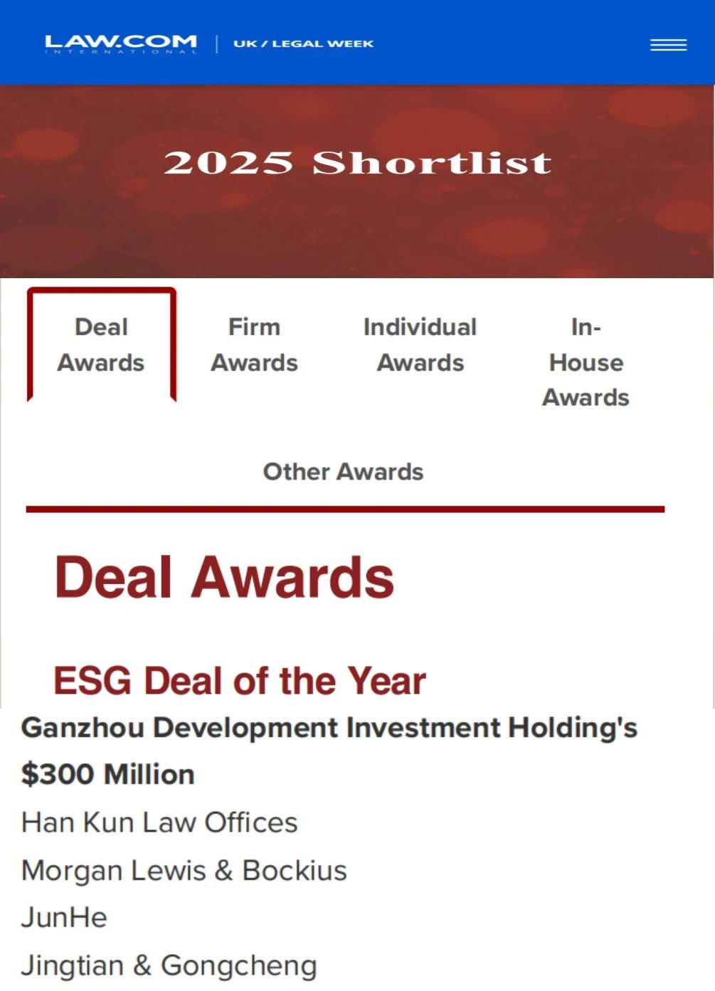 近日,國(guó)際知名法律媒體Law.com International公布2025年度亞洲法律大獎(jiǎng)提名名單,贛州發(fā)展投資控股集團(tuán)有限責(zé)任公司3億美元可持續(xù)發(fā)展境外債券項(xiàng)目強(qiáng)勢(shì)入圍“年度交易大獎(jiǎng)”子獎(jiǎng)項(xiàng)“年度ESG交易”獎(jiǎng)項(xiàng)提名,成為境內(nèi)唯一獲得該獎(jiǎng)項(xiàng)提名的企業(yè),以“可持續(xù)發(fā)展”鮮明屬性,彰顯集團(tuán)在ESG實(shí)踐與國(guó)際資本運(yùn)作中的雙重突破。